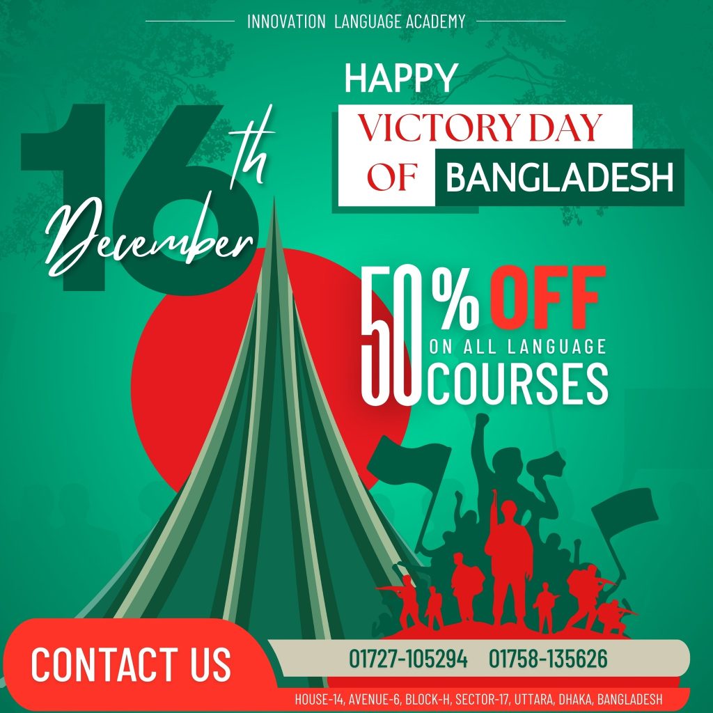 This Victory Day, Innovation Language Academy proudly honors the sacrifices of our brave freedom fighters and celebrates the indomitable spirit of Bangladesh!